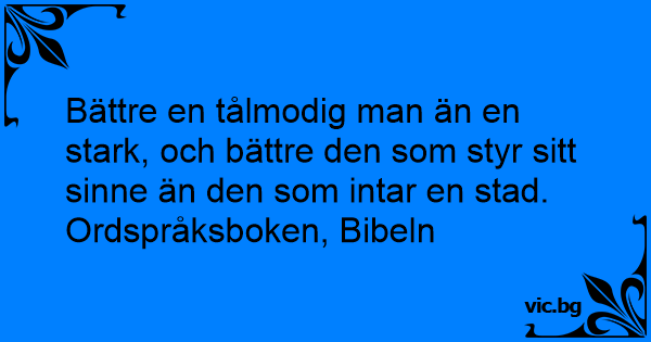 Bättre en tålmodig man än en stark, och bättre den som styr sitt sinne än den som intar en stad.