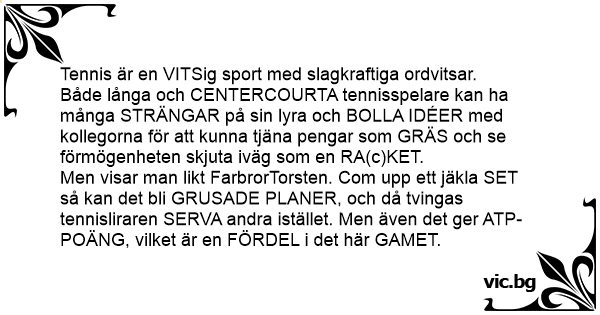 Tennis är en VITSig sport med slagkraftiga ordvitsar.