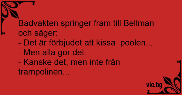 - Иванчо, не бива да пикаеш в басейна! - Ама всички пикаят там - Може би, но не от кулата