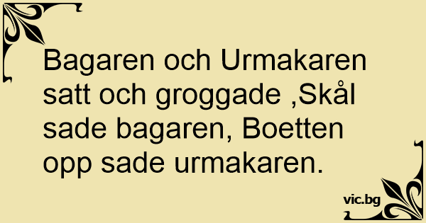 Bagaren och Urmakaren satt och groggade ,Skål sade bagaren, Boetten opp sade urmakaren.
