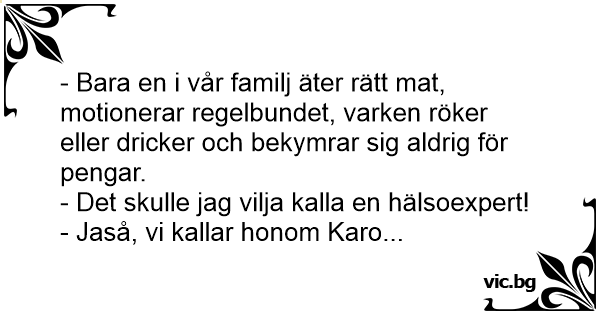 - Bara en i vår familj äter rätt mat, motionerar regelbundet, varken röker eller dricker och bekymrar sig aldrig för pengar.