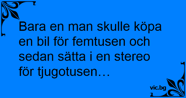 Bara en man skulle köpa en bil för femtusen och sedan säтта i en stereo för tjugotusen…