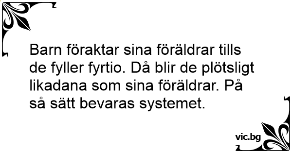 Barn föraktar sina föräldrar tills de fyller fyrtio. Då blir de plötsligt likadana som sina föräldrar. På så sätt bevaras systemet.