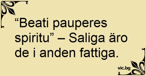 “Beati pauperes spiritu” – Saliga äro de i anden fattiga.