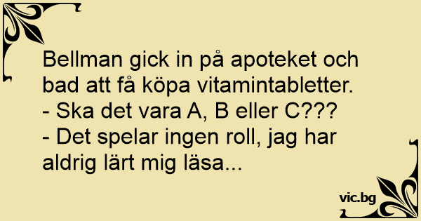 - As dori niste vitamine pentru copii! - A,B sau C? - Indiferent! Inca nu au invatat sa citeasca.