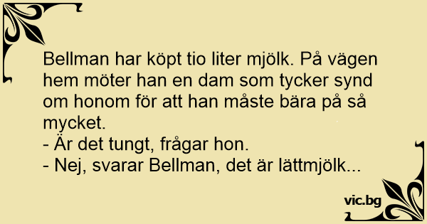 - Nej, svarar Bellman, det är lättmjölk...