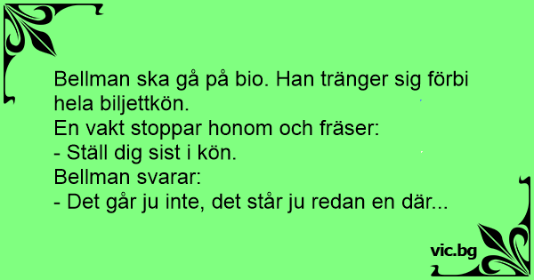Bellman ska gå på bio. Han tränger sig förbi hela biljettkön.