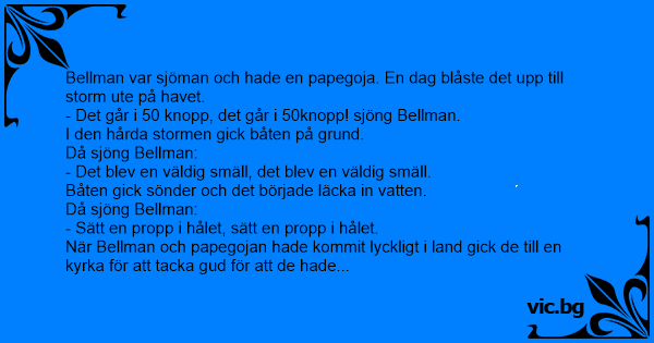 Bellman var sjöman och hade en papegoja. En dag blåste det upp till storm ute på havet.