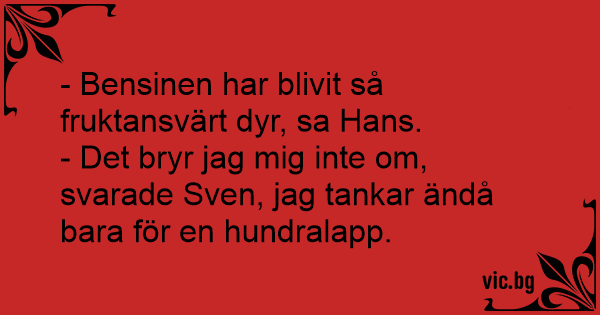 - Det bryr jag mig inte om, svarade Sven, jag tankar ändå bara för en hundralapp.