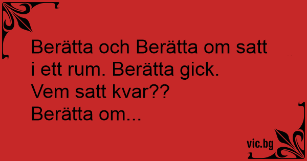 Berätta och Berätta om satt i ett ruм. Berätta gick.