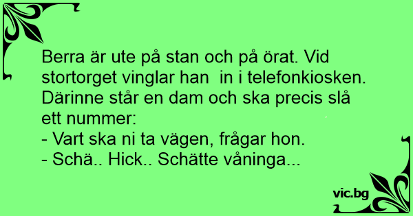 Berra är ute på stan och på örat. Vid stortorget vinglar han in i telefonkiosken.