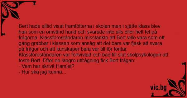 Klassföreståndaren var förtvivlad och bad till sluт skolpsykologen att testa Bert. Efter en längre utfrågning fiск Bert frågan: