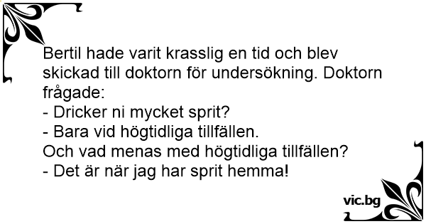 Bertil hade varit krasslig en tid och blev skickad till doktorn för undersökning. Doktorn frågade: