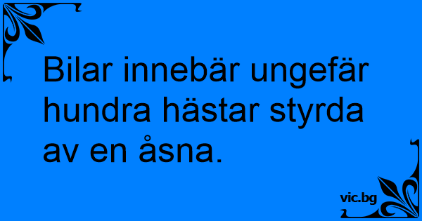 Bilar innebär ungefär hundra hästar styrda av en åsna.