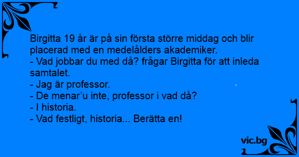 Birgitta 19 år är på sin första större middag och blir placerad med en medelålders akademiker.