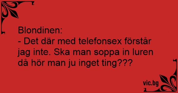 - Det där med telefonsex förstår jag inte. Ska man soppa in luren då hör man ju inget ting???