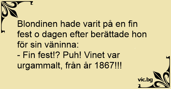 - Fin fest!? Puh! Vinet var urgammalt, från år 1867!!!