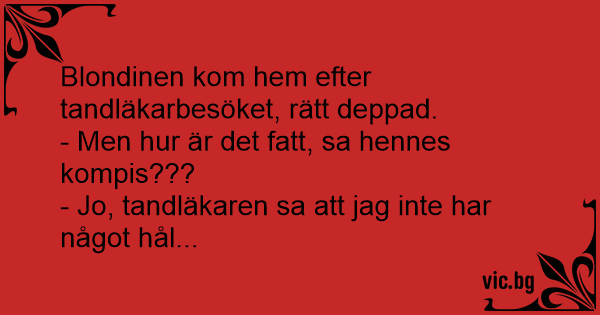 Blondinen kom hem efter tandläkarbesöket, rätt deppad.