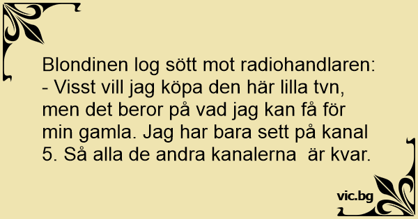 - Visst vill jag köpa den här lilla tvn, men det beror på vad jag kan få för min gamla. Jag har bara sett på kanal 5. Så alla de andra kanalerna är kvar.