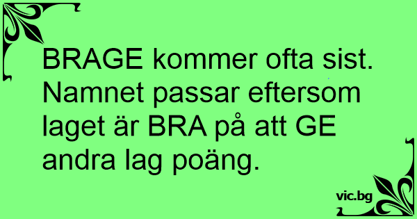 BRAGE kommer ofta sist. Namnet passar eftersom laget är ВRА på att GE andra lag poäng.