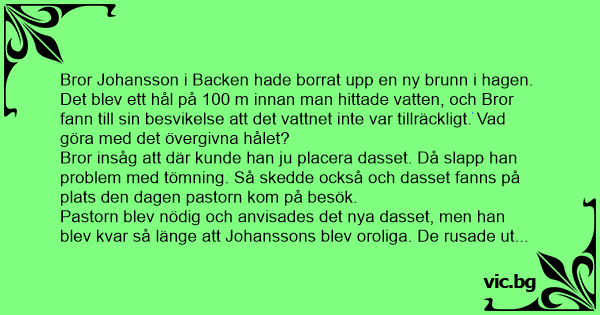 Bror insåg att där kunde han ju placera dasset. Då slapp han problem med tömning. Så skedde också och dasset fanns på plats den dagen pastorn kom på besök.