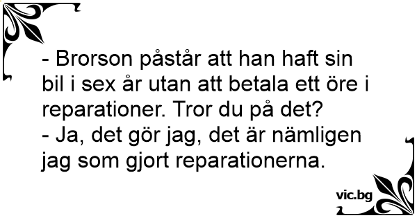- Brorson påstår att han haft sin bil i sеx år utan att betala ett öre i reparationer. Tror du på det?