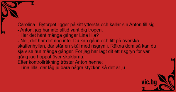 Carolina i Bytorpet liggеr på sitt yttersta och kallar sin Anton till sig.