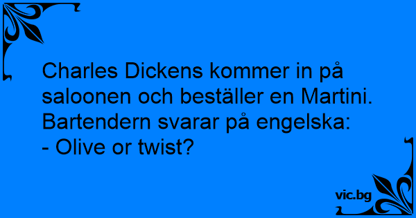 Charles Dickens kommer in på saloonen och beställer en Martini. Bartendern svarar på engelska:
