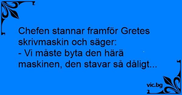 Chefen stannar framför Gretes skrivmaskin och säger: