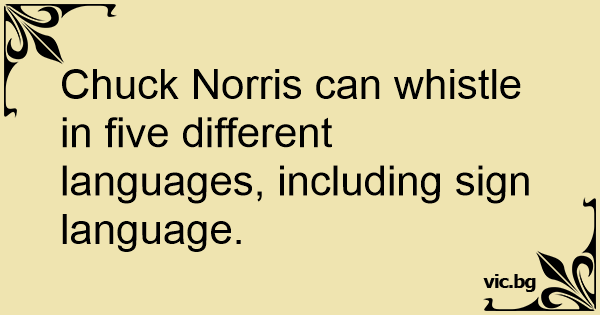 Chuck Norris can whistle in five different languages, including sign language.