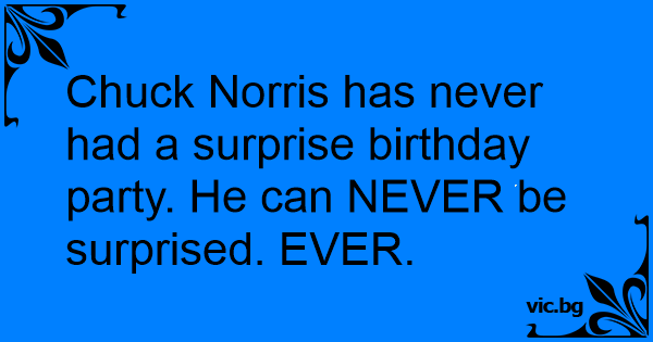 Chuck Norris has never had a surprise birthday party. He can NEVER be surprised. EVER.