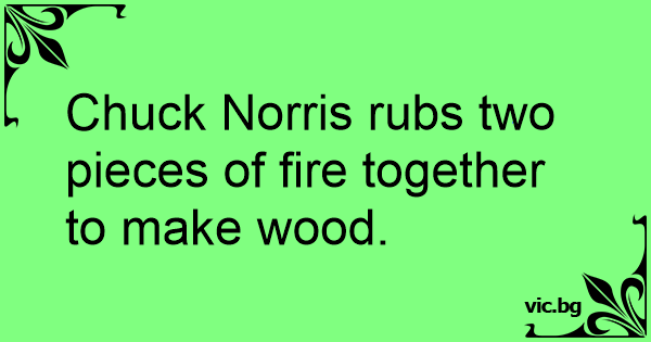Chuck Norris rubs two pieces of fire together to make wood.
