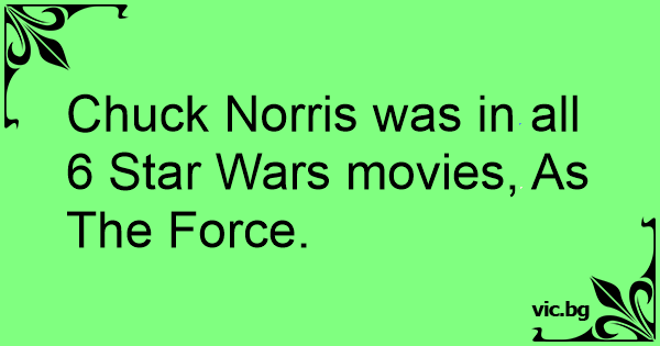 Чък Норис е единственият, който е участвал във всички епизоди на "Междузвездни войни! " Той играе Силата.