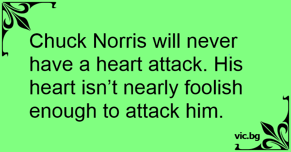 Chuck Norris will never have a heart attack. His heart isn’t nearly foolish enough to attack him.