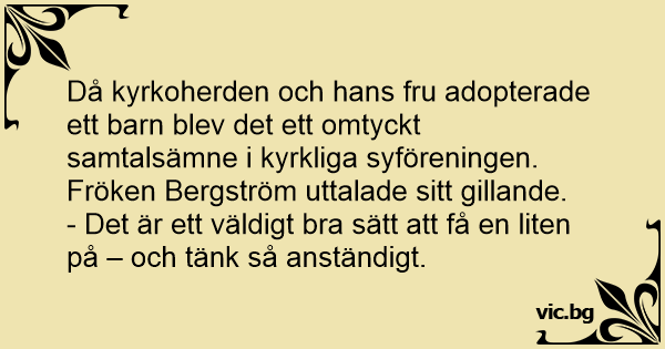 Då kyrkoherden och hans fru adopterade ett barn blev det ett omtyckt samtalsämne i kyrkliga syföreningen.
