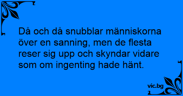 Då och då snubblar människorna över en sanning, men de flesta reser sig upp och skyndar vidare som om ingenting hade hänt.