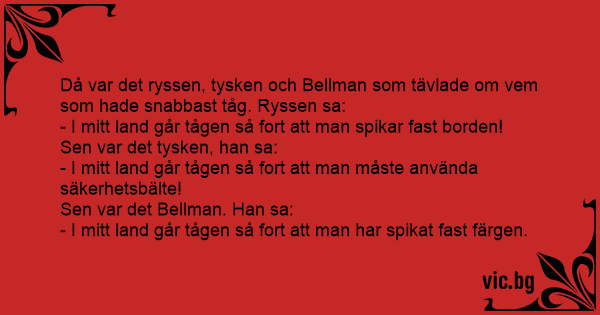 Då var det ryssen, tysken och Bellman som tävlade om vem som hade snabbast tåg. Ryssen sa: