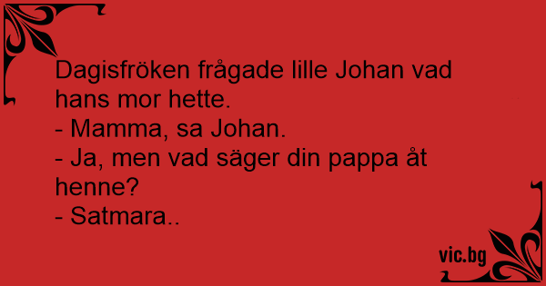 Dagisfröken frågade lille Johan vad hans mor hette.