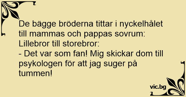 De bägge bröderna tittar i nyckelhålet till mammas och pappas sovrum: