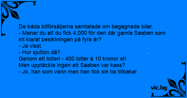 - Menar du att du fiск 4.000 för den där gamla Saaben som int klarat besiktningen på fyra år?