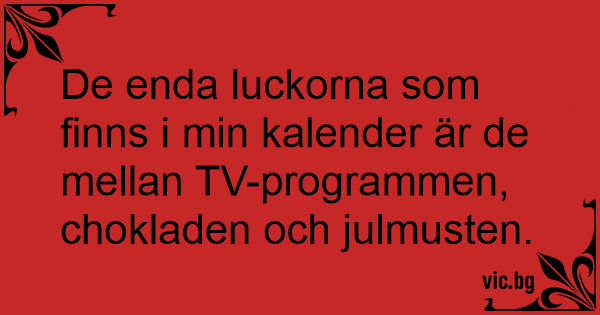 De enda luckorna som finns i min kalender är de mellan TV-programmen, chokladen och julmusten.