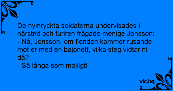 De nyinryckta soldaterna undervisades i närstrid och furiren frågade menige Jonsson:
