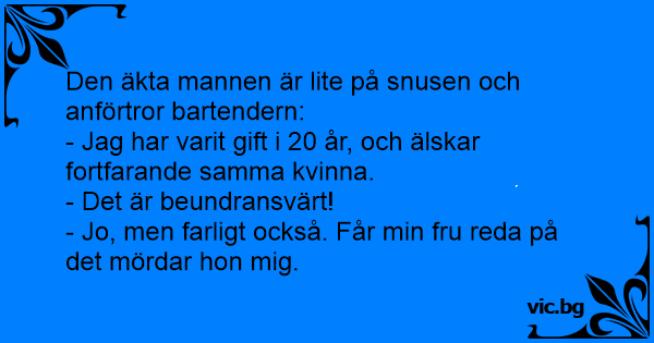 - Jo, men farligt också. Får min fru reda på det mördar hon mig.