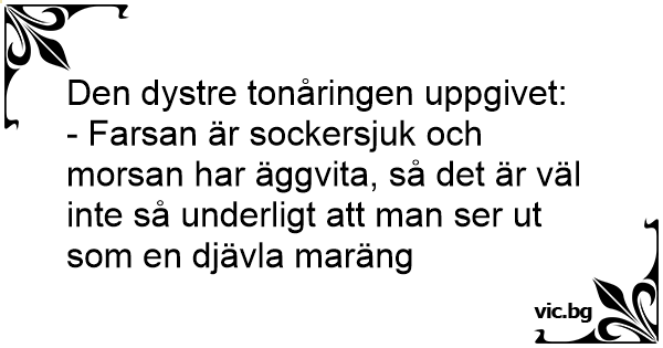 - Farsan är sockersjuk och morsan har äggvita, så det är väl inte så underligt att man ser ut som en djävla maräng