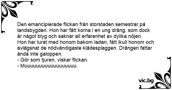 Hon har lurat med honom bakom ladan, fått ikull honom och avlägsnat de nödvändigaste klädesplaggen. Drängen fattar ändå inte galoppen.