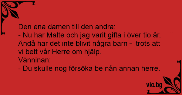 - Nu har Malte och jag varit gifta i över tio år. Ändå har det inte blivit några barn trots att vi bett vår Herre om hjälp.