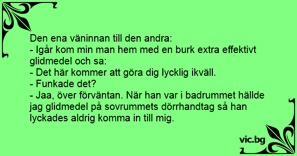 - Igår kom min man hem med en burk extra effektivt glidmedel och sa: