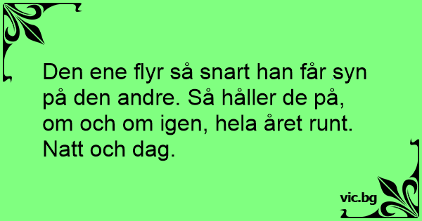 Den ene flyr så snart han får syn på den andre. Så håller de på, om och om igen, hela året runt.