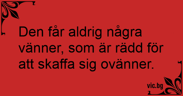 Den får aldrig några vänner, som är rädd för att skaffa sig ovänner.