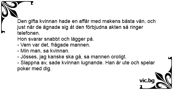 Den gifta kvinnan hade en affär med makens bästa vän, och just när de ägnade sig åt den förbjudna akten så ringer telefonen.